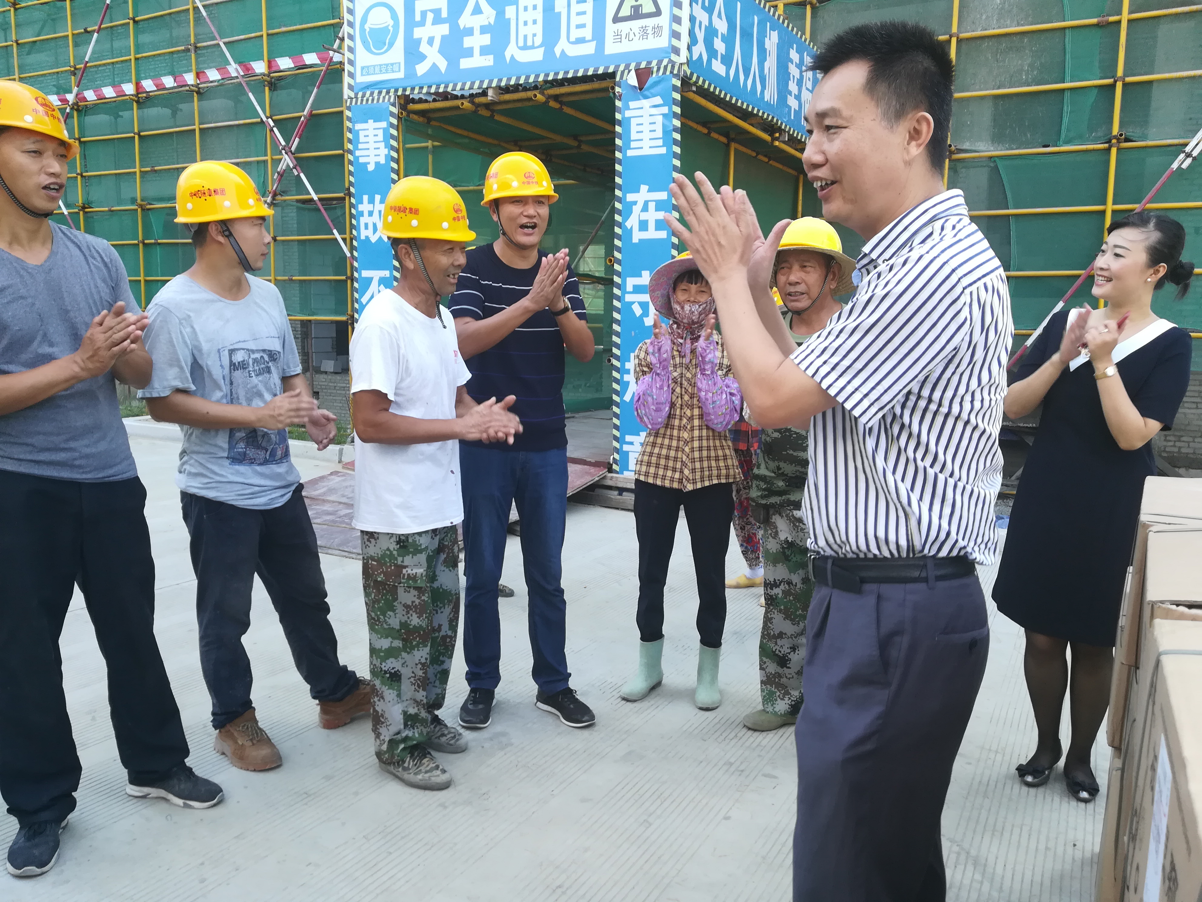 高温酷暑的炎炎夏季,为了做好防暑降温工作,保障施工一线工人身心健康,平安度夏。2019年7月19日上午,澄迈县总工会到我司项目开展“2019年夏送清凉”慰问活动,给奋战在施工一线的工人送来一丝清凉和组织的关爱。此次活动由澄迈县总工会吴先强常务副主席带队,县总工会、金马物流管委会等相关部门领导陪同,我司常务副总经理赵文娟、全体办公室人员及工人代表参加活动。