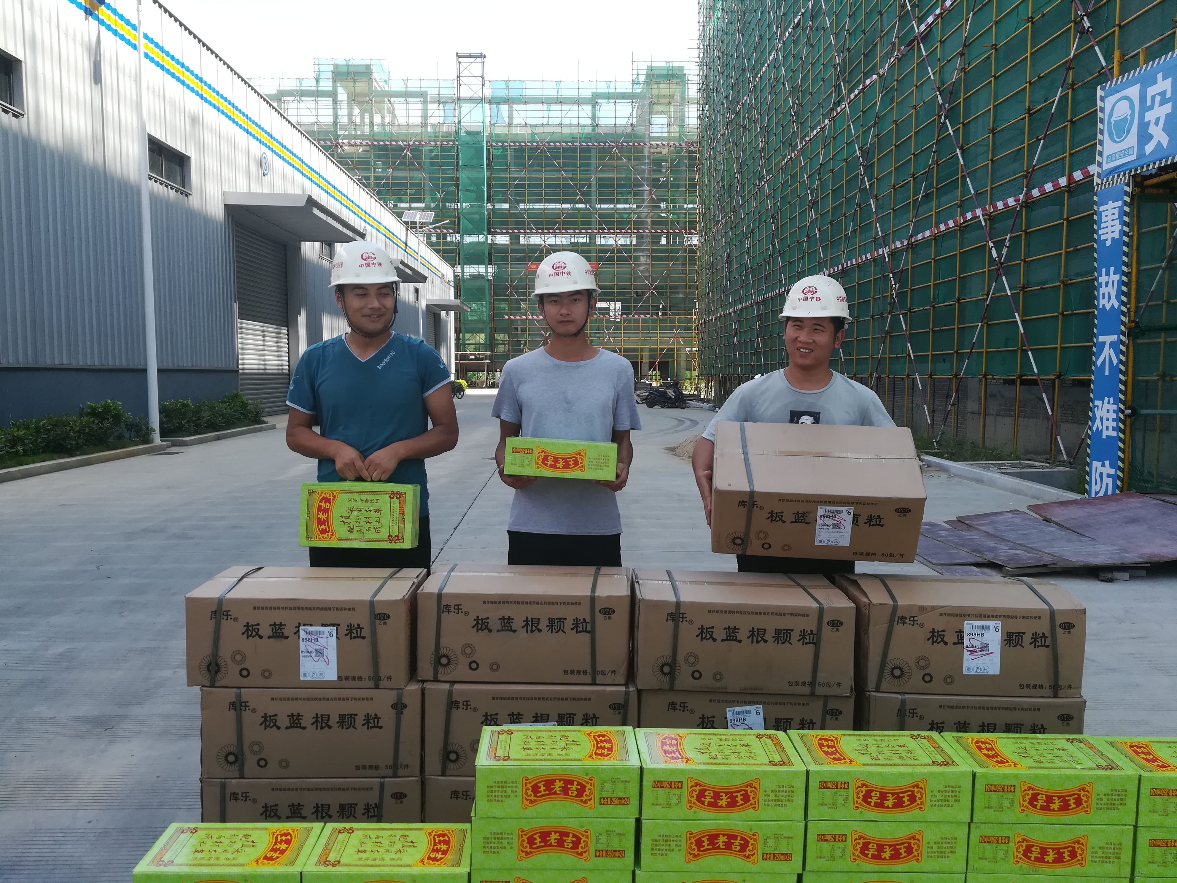 慰问活动现场,澄迈县总工会吴先强常务副主席对奋斗在施工一线的工人付出的辛勤努力表示敬意,并亲手将板蓝根、王老吉等防暑降温用品送到一线工人手中,并叮嘱他们要注意防暑,注意施工安全。现场工人们拿着发放的慰问品,脸上洋溢着满满的幸福,并纷纷表示,在强烈的阳光照射下,虽然感到闷热难受,但感受到了组织送来的关怀和关爱,并保证一定会克服酷暑高温,坚守岗位,尽职尽责,积极投身于施工生产中,确保安全、保质保量的完成项目部下达的各项任务目标。