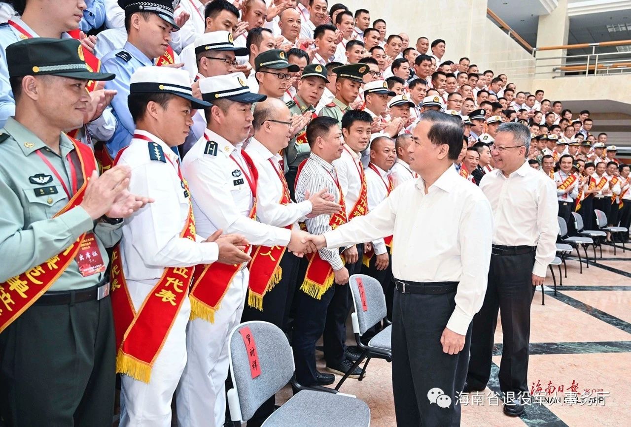 刘赐贵,省委副书记、省长沈晓明等领导会见优秀退役军人和双拥模范代表。海南日报记者 王凯 摄